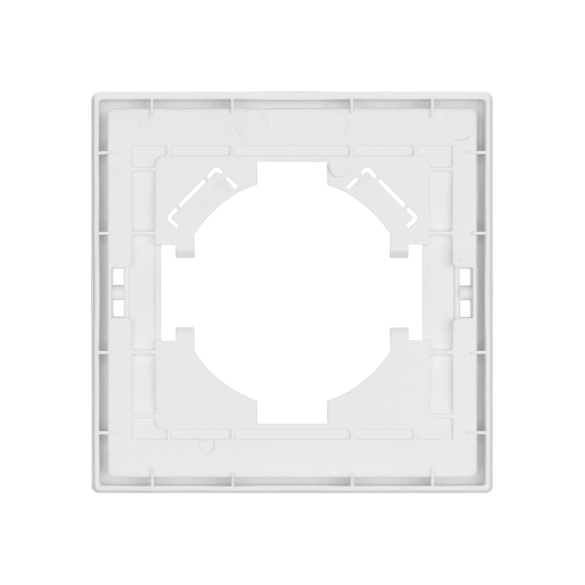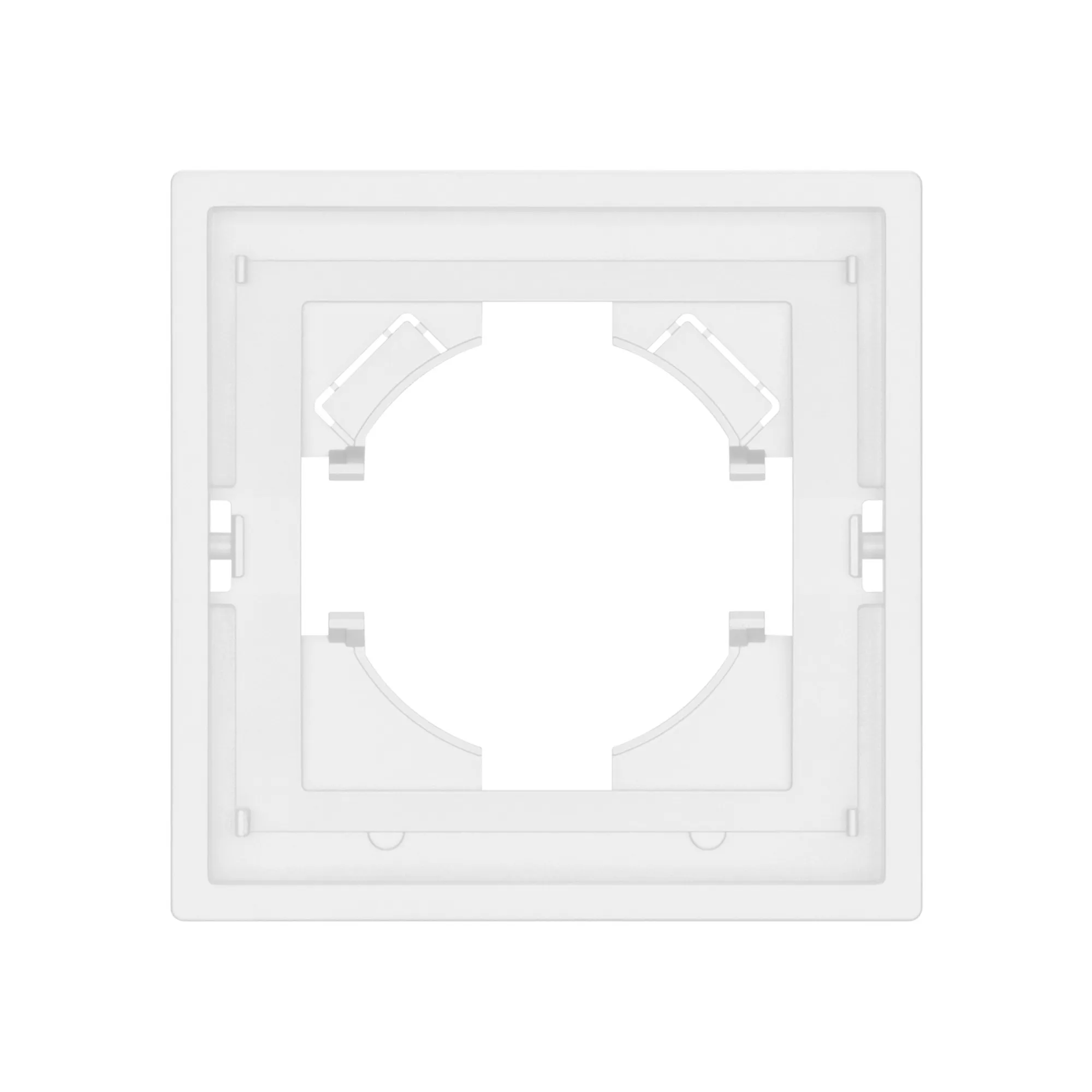Корпус рамки выполнен в белом цвете и имеет матовое покрытие, что придает изделию приятные тактильные свойства. Высота рамки составляет 9 мм, что позволяет эффективно интегрировать рамку в интерьерные решения любого уровня сложности.