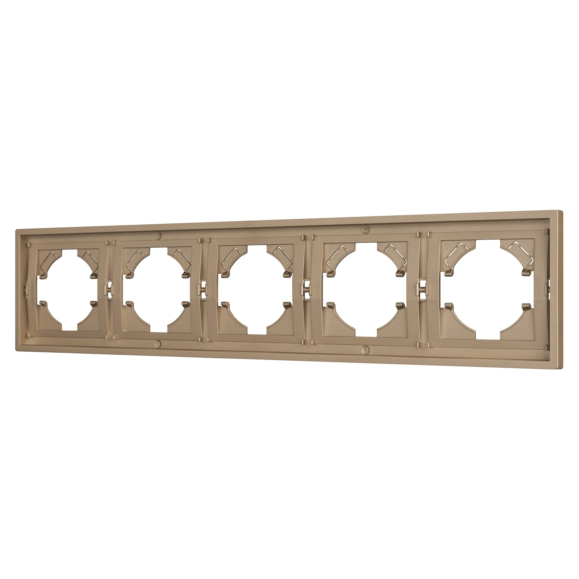 Корпус рамки выполнен в золотом цвете и имеет матовое покрытие, что придает изделию приятные тактильные свойства. Высота рамки составляет 9 мм, что позволяет эффективно интегрировать рамку в интерьерные решения любого уровня сложности.