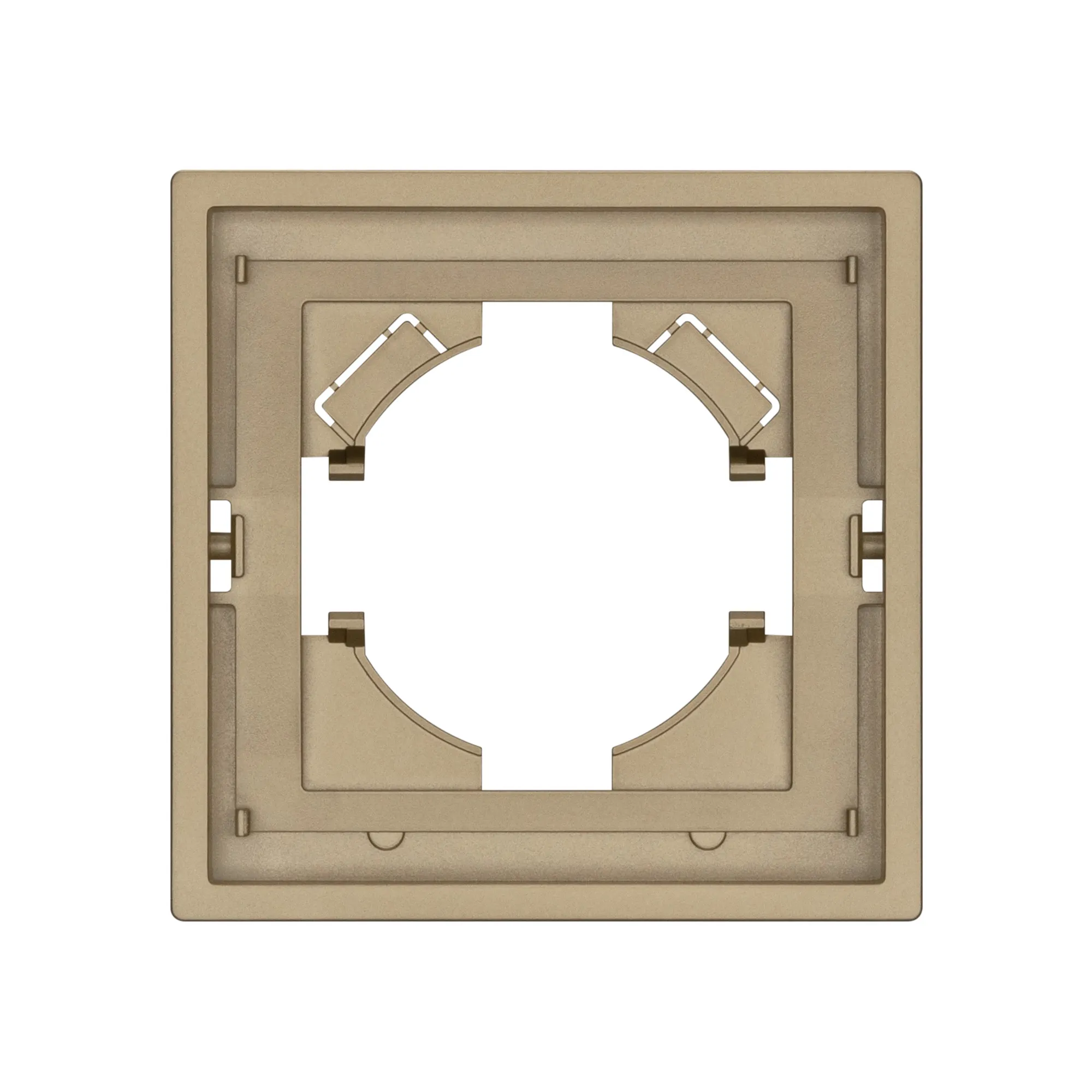 Корпус рамки выполнен в матовом песочном цвете и имеет покрытие Soft-Touch, что придает изделию приятные тактильные свойства. Высота рамки составляет 9 мм, что позволяет эффективно интегрировать рамку в интерьерные решения любого уровня сложности.