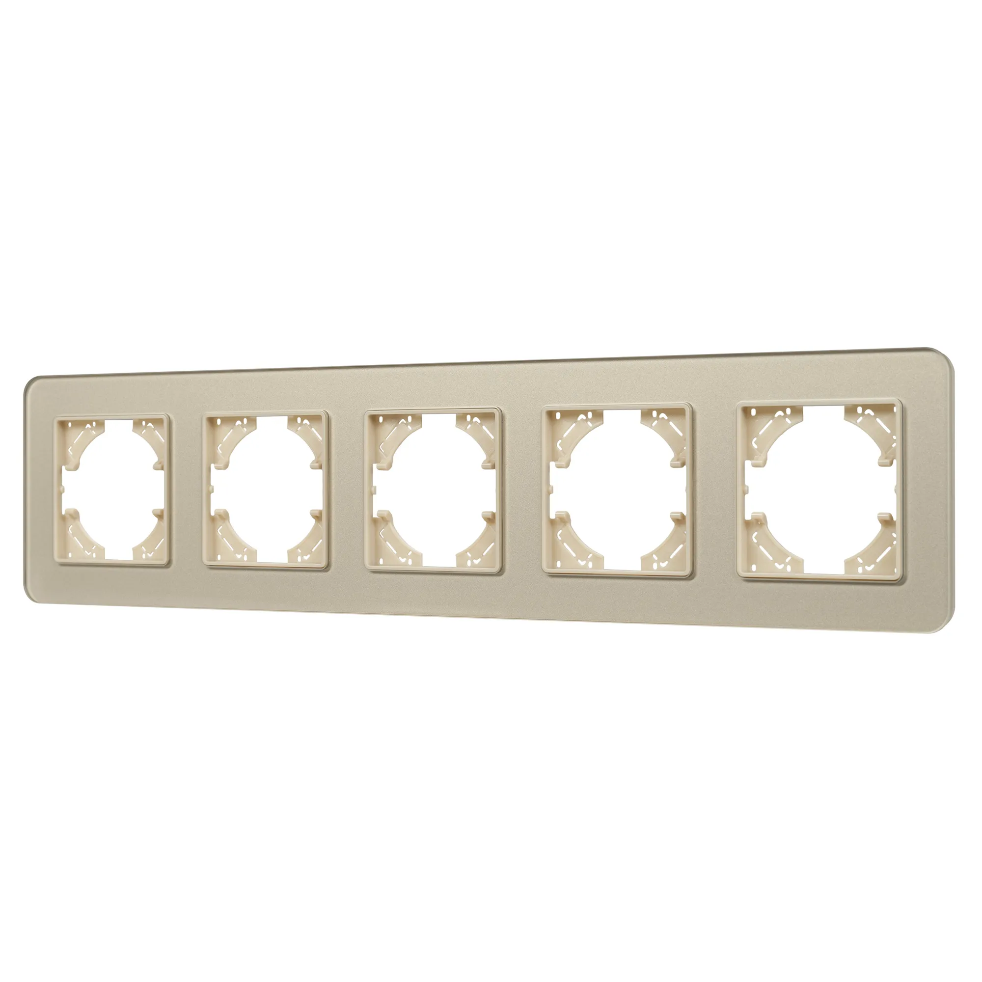 Рамка из серии OMALI изготовлена из закаленного стекла высокой прочности. Корпус выполнен в золотом цвете и глянцевой поверхностью с высотой 7мм, что позволяет гармонично встроить в интерьер любого современного дизайн-проекта. Невидимая часть из тугоплавкого пластика, для надежной фиксации механизма. Предназначена под встраиваемые механизмы.