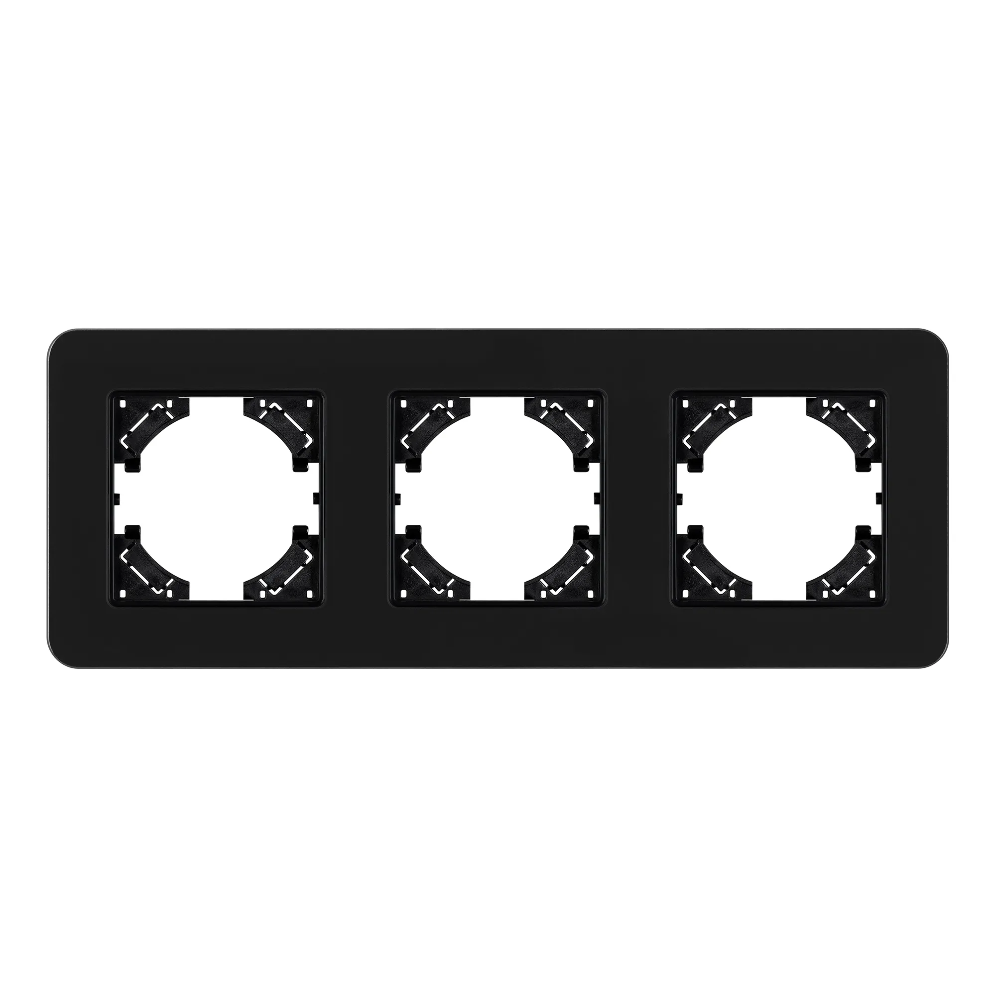 Рамка из серии OMALI изготовлена из закаленного стекла высокой прочности. Корпус выполнен в черном цвете и поверхностью с Soft-Touch покрытием высотой 7мм, что позволяет гармонично встроить в интерьер любого современного дизайн-проекта. Невидимая часть из тугоплавкого пластика, для надежной фиксации механизма. Предназначена под встраиваемые механизмы.
