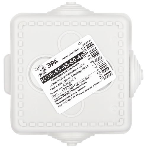 1. Крышка закрывается с помощью специальной защелки и не нуждается в использовании инструмента. 2. Степень защиты IP54 обеспечена наличием гермовводов для соединения гладких и гофрированных труб. 3. Крепление крышки к коробке с помощью поводков исключает потерю крышки при монтаже. 4. Наличие индивидуальной маркировки обеспечивает простую реализацию в розницу