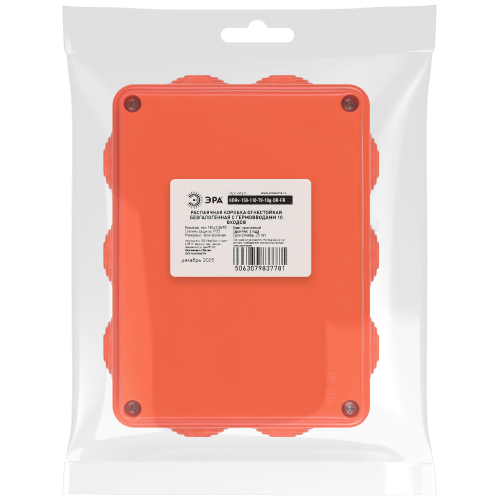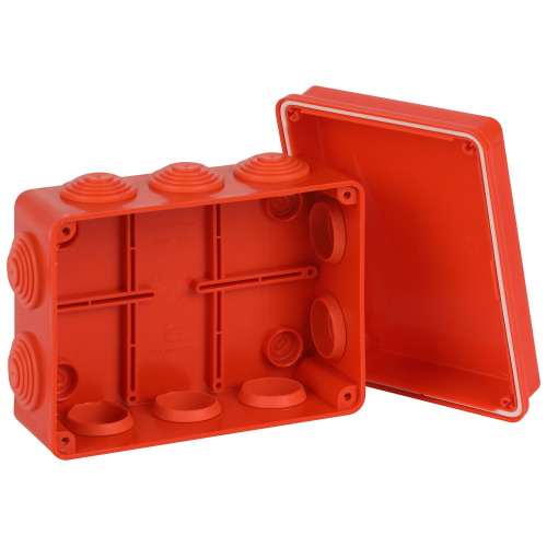 Наличие герметичных вводов для кабеля и труб; надежная фиксация крышки и основания коробки; не выделяет галогенов; негорючая; 10 вводов; индивидуальная упаковка; IP55.