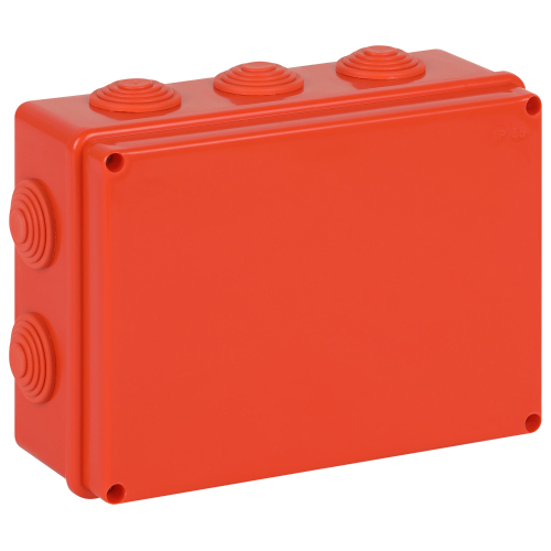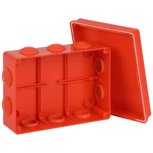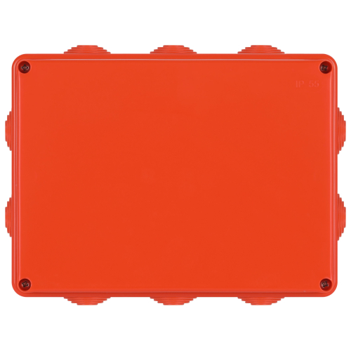 Наличие герметичных вводов для кабеля и труб; надежная фиксация крышки и основания коробки; не выделяет галогенов; негорючая; 10 вводов; индивидуальная упаковка; IP55.