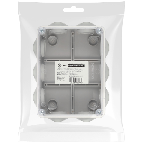 Распаячная коробка ЭРА KORvp - приборная подъездная распаячная коробка ЭРА открытой установки. Размер - 150 х 110 х 70 мм. Коробка распаячная с гладкими стенками на винтах, в комплекте 4 самореза. Распаячная коробка изготовлена из полистирола, не поддерживающего горение. Защищена от влаги и пыли - IP55. Коробки распаячные ЭРА позволяют эффективно изолировать точки отвода электропроводов, электрокабель сетей освещения и энергосиловых сетей напряжением до 1000 В переменного и постоянного тока. Удачное решение для монтажа и изоляции информационных кабелей: компьютерных, телефонных, сетей связи. Коробки распаячные ЭРА используются при открытом монтаже электропроводки. Можно осуществлять установку с гладкими и гофрированными трубами диаметром до 50 мм.