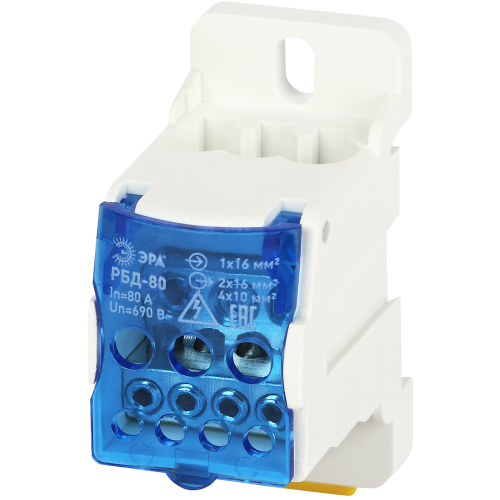 Распределительные блоки РБД на DIN-рейку ЭРА предназначены для распределения электроэнергии от проводника большего сечения на несколько проводников меньшего сечения.