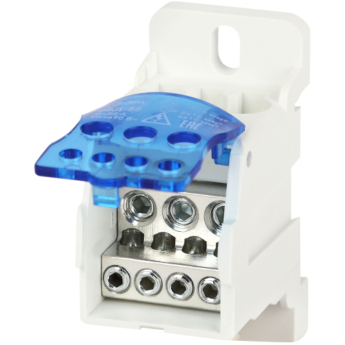 Изделие представляет собой клеммный винтовой зажим из луженой латуни в компактном корпусе из негорючего полиамида 6.6. Крепится на монтажную панель или на DIN-рейку с помощью универсального крепления. Применяется для создания упорядоченных систем распределения в силовых шкафах, квартирных распределительных щитах и для организации главной заземляющей шины.