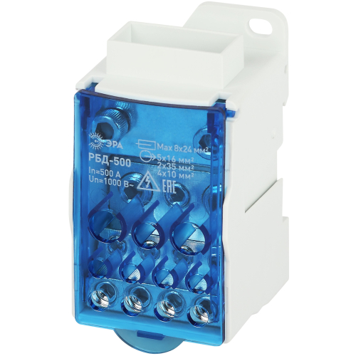 Распределительные блоки РБД на DIN-рейку ЭРА предназначены для распределения электроэнергии от проводника большего сечения на несколько проводников меньшего сечения.