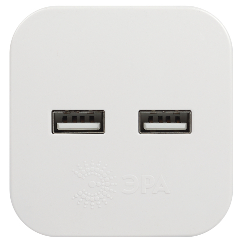 Тройник (адаптер) ЭРА с 2-мя розетками и 2-мя USB гнездами для зарядки портативных устройств. Идеален для зарядки мобильных телефонов и планшетов. Особенно актуален, когда в помещении мало источников подключения - можно из одной розетки сделать две и при этом ещё заряжать 2 устройства одновременно через USB. Максимальная мощность USB разъемов: 2400 мА.