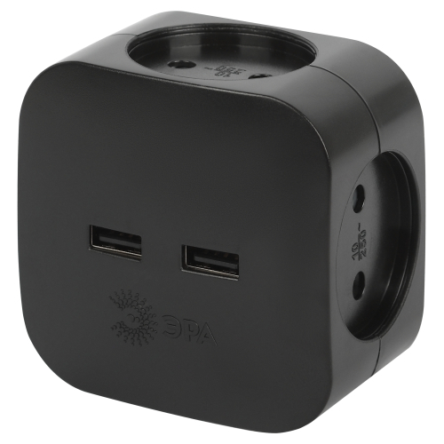 Разветвитель сетевой в форме кубика с закруглёнными углами выглядит оригинально и отличается компактностью. Розетки утоплены в корпус, благодаря чему вилка плотно сидит в гнезде. Под USB-портами - объёмный логотип ЭРА. Разветвитель-кубик ЭРА в белом цвете - арт. Б0049532, в чёрном цвете - Б0049536.