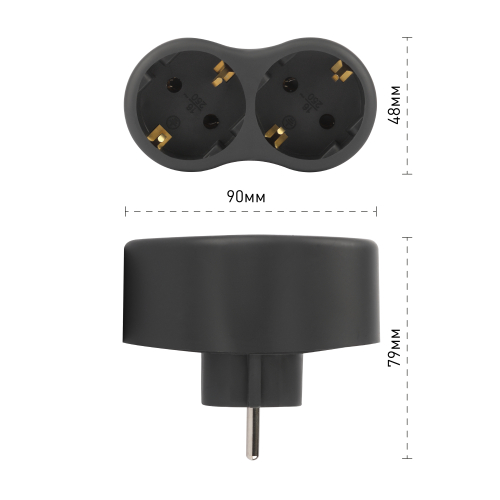Сетевой разветвитель (тройник) ЭРА SPx-2e-B на 2 розетки, с заземлением. Цвет-черный. Максимальная мощность - 16А/3500 Вт, материал корпуса - полипропилен (пластик премиум сегмента). Эксклюзивный продакт-дизайн.