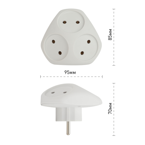 Сетевой разветвитель (тройник) ЭРА. Максимальная мощность - 10А/2200 Вт, материал корпуса - полипропилен (пластик премиум сегмента).