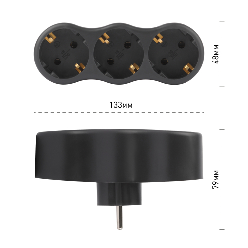Сетевой разветвитель (тройник) ЭРА SPx-3e-B на 3 розетки, с заземлением. Цвет-черный. Максимальная мощность - 16А/3500 Вт, материал корпуса - полипропилен (пластик премиум сегмента). Эксклюзивный продакт-дизайн.