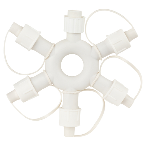 Разветвитель для гирлянд ЭРА подойдет для любого праздника. С помощью него можно создать настоящие произведения искуства из гирлянд. Разветвитель выполнен в виде кольца - снежинки и имеет 6 выходов. Он подойдет для внутреннего декорирования дома или наружной иллюминации под навесом. Степень защиты - IP44. Такая степень защиты предполагает использование прибора во влажных помещениях, где на него может воздействовать пар. Диаметр кольца составляет 13 см. Корпус разветвителя выполнен из материала ПВХ. В качестве дополнительной защиты каждый из коннекторов дополнен заглушкой, которую можно применить, если выход не используется. Купив разветвитель для гирлянд ЭРА, вы останетесь довольны и сможете создать праздничную атмосферу в доме!