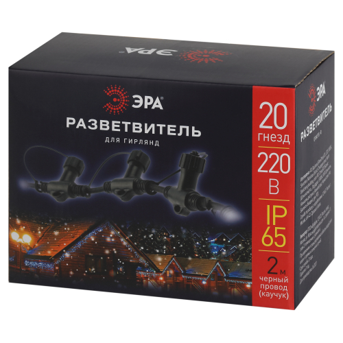 Профессиональный линейный разветвитель ЭРА ERAPS-R для уличного новогоднего освещения. Дает возможность максимально широко решать дизайнерские задачи в новогодней иллюминации улиц, фасадов зданий, деревьев, новогодних ярмарок, новогодних площадей, зимних городков, уличных веранд кафе и ресторанов, загородных домов, коттеджей. Надежный уличный разветвитель совместим с профессиональными гирляндами IP65 большинства производителей. Монтаж уличного освещения, соединение в единую линию и демонтаж безопасны даже для любителя. А профессиональные светотехники и дизайнеры с помощью профессионального новогоднего освещения ЭРА могут легко создавать масштабные креативные LED-инсталляции.