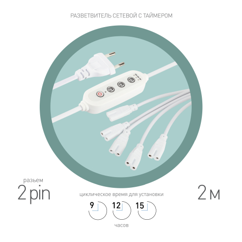 Технические характеристики: таймер времени, двойной штекер IEC 60320 C7, кабель 2х0,5 мм2, ПВС; для устройств II класса электробезопасности, без заземления; выдерживает нагрузку до 150 Вт. С помощью нового сетевого разветвителя от торговой марки ЭРА можно быстро и легко организовать комплексное освещение для большой площади. Одна розетка — и сразу 5 светильников!