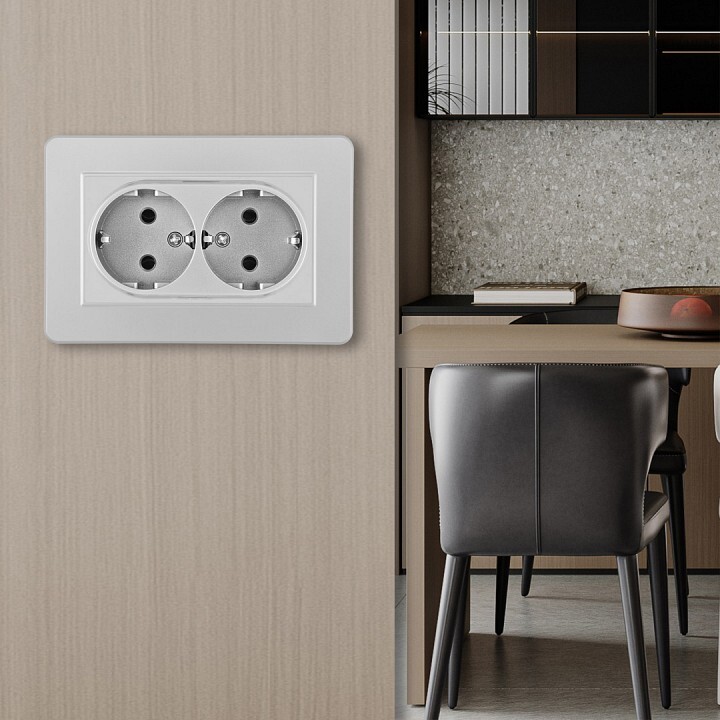Сопутствующие товары,Розетки двойные с заземлением и со шторками
