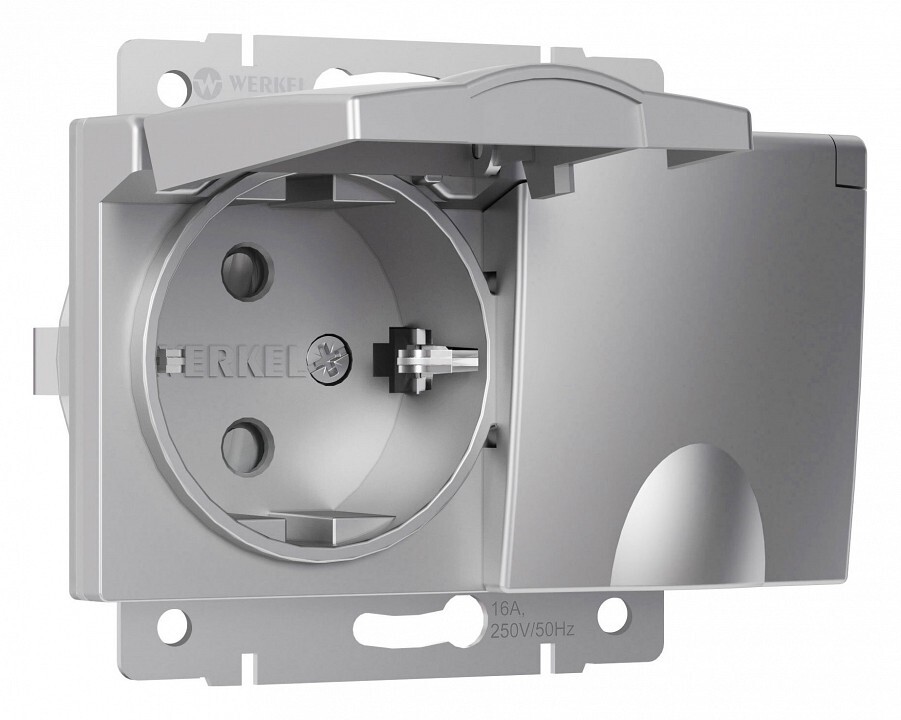 Розетка двойная влагозащищенная с заземлением и со шторками, без рамки с крышкой