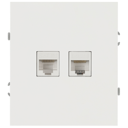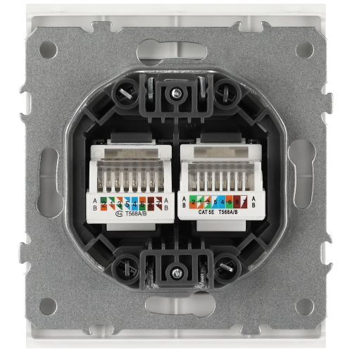 Розетка интернет двойная RJ45 серии ЭРА Arktik скрытой установки механизм цвет белый 16-3108-01. Сделана из поликарбоната, оснащёна винтовыми клеммами. Парные клеммы обеспечивают соединение шлейфом. Монтаж в подрозетник производится и на лапки, и на винты. Рамки приобретаются отдельно.