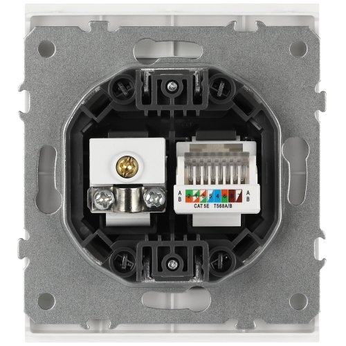 Розетка телевизионная + интернет серии ЭРА Arktik скрытой установки механизм цвет белый 16-3110-01. Сделана из поликарбоната, оснащёна винтовыми клеммами. Парные клеммы обеспечивают соединение шлейфом. Монтаж в подрозетник производится и на лапки, и на винты. Рамки приобретаются отдельно.