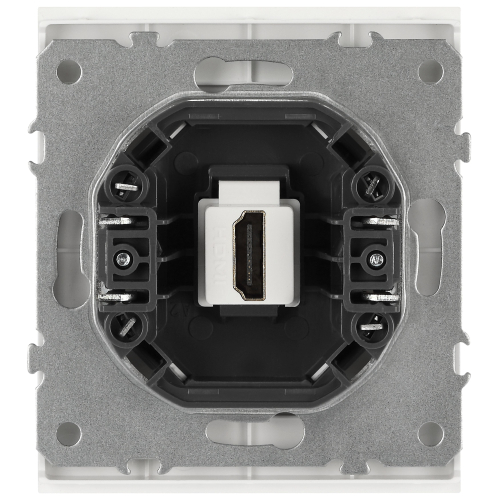 Розетка HDMI серии ЭРА Arktik скрытой установки механизм цвет белый 16-3114-01. Сделана из поликарбоната, оснащёна винтовыми клеммами. Парные клеммы обеспечивают соединение шлейфом. Монтаж в подрозетник производится и на лапки, и на винты. Рамки приобретаются отдельно.