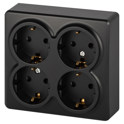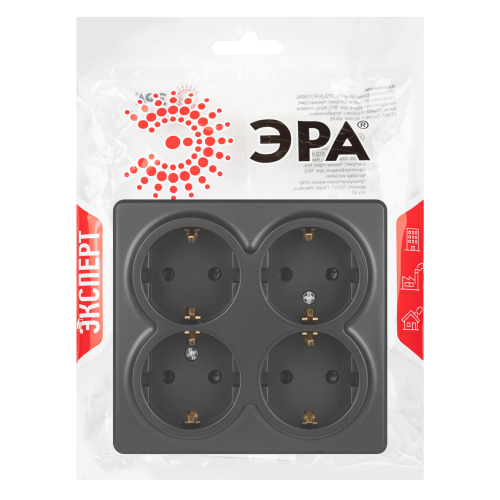 Розетка четырехместная с заземлением, со шторками серии Эра Эксперт открытой установки цвет антрацит 11-2211-05. Номинальные характеристики 16А 250В. Устройство выполнено из качественного поликарбоната, оснащёно уникальными винтовыми клеммами ЭКСПЕРТ для максимально качественного зажима кабеля в механизме.