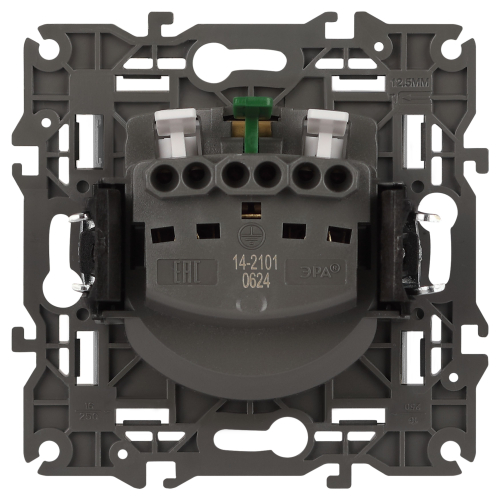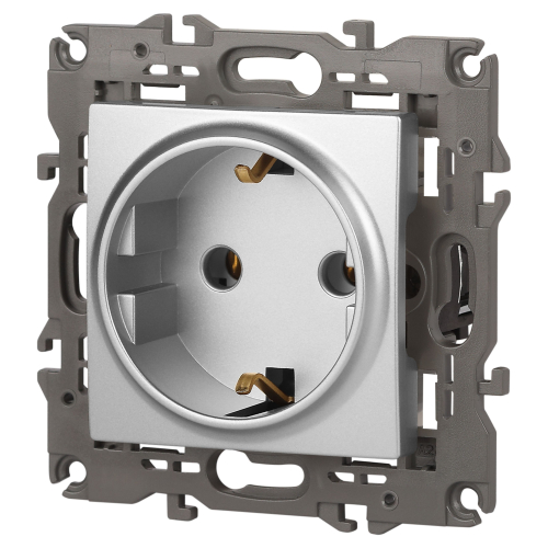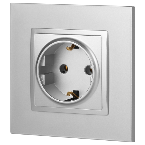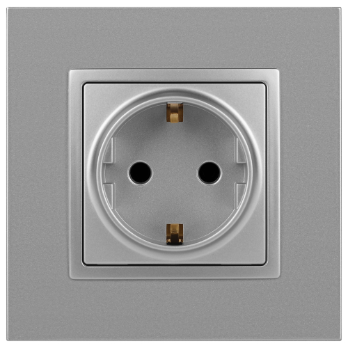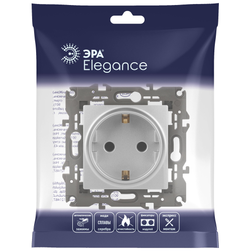 Розетка с заземлением Эра Elegance алюминий 14-2101-03. Оснащёна автоматическими клеммами для надёжной фиксации жил кабеля в механизме. Рамки приобретаются отдельно. Рамки Эра Elegance ПЛАСТИК: 1 пост 14-5001-хх, 2 поста 14-5002-хх, 3 поста 14-5003-хх, 4 поста 14-5004-хх, 5 постов 14-5005-хх; СТЕКЛО: 1 пост 14-5101-хх, 2 поста 14-5102-хх, 3 поста 14-5103-хх, 4 поста 14-5104-хх; МЕТАЛЛ: 1 пост 14-5201-хх, 2 поста 14-5202-хх, 3 поста 14-5203-хх, 4 поста 14-5204-хх; ДЕРЕВО: 1 пост 14-5301-хх, 2 поста 14-5302-хх, 3 поста 14-5303-хх, 4 поста 14-5304-хх (хх - код цвета: 00-прозрачный, 01-белый, белёный дуб, 02-слоновая кость, 03-алюминий, 04-шампань, 05-чёрный, чёрное дерево, 07-ясень, 09-дуб, 10-венге, 11-клён, 14-медь, 21-жёлтый, 22-оранжевый, 23-красный, 25-бордо, 26-лайм, 27-зелёный, 28-голубой, 29-синий, 30-розовый, 31-мокко, 32-серый, 41-сталь, 42-титан).