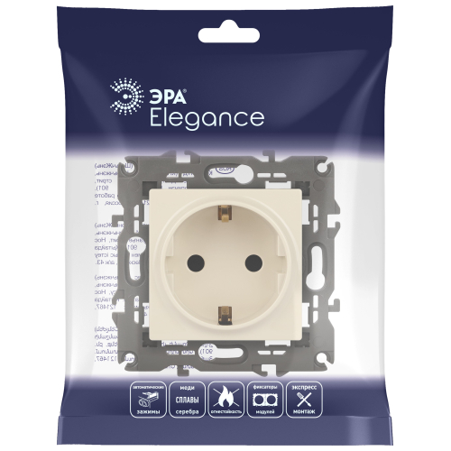 Розетка с заземлением со шторками Эра Elegance слон.кость 14-2102-02. Оснащёна автоматическими клеммами для надёжной фиксации жил кабеля в механизме. Рамки приобретаются отдельно. Рамки Эра Elegance ПЛАСТИК: 1 пост 14-5001-хх, 2 поста 14-5002-хх, 3 поста 14-5003-хх, 4 поста 14-5004-хх, 5 постов 14-5005-хх; СТЕКЛО: 1 пост 14-5101-хх, 2 поста 14-5102-хх, 3 поста 14-5103-хх, 4 поста 14-5104-хх; МЕТАЛЛ: 1 пост 14-5201-хх, 2 поста 14-5202-хх, 3 поста 14-5203-хх, 4 поста 14-5204-хх; ДЕРЕВО: 1 пост 14-5301-хх, 2 поста 14-5302-хх, 3 поста 14-5303-хх, 4 поста 14-5304-хх (хх - код цвета: 00-прозрачный, 01-белый, белёный дуб, 02-слоновая кость, 03-алюминий, 04-шампань, 05-чёрный, чёрное дерево, 07-ясень, 09-дуб, 10-венге, 11-клён, 14-медь, 21-жёлтый, 22-оранжевый, 23-красный, 25-бордо, 26-лайм, 27-зелёный, 28-голубой, 29-синий, 30-розовый, 31-мокко, 32-серый, 41-сталь, 42-титан).