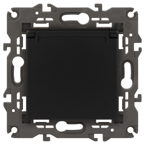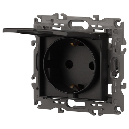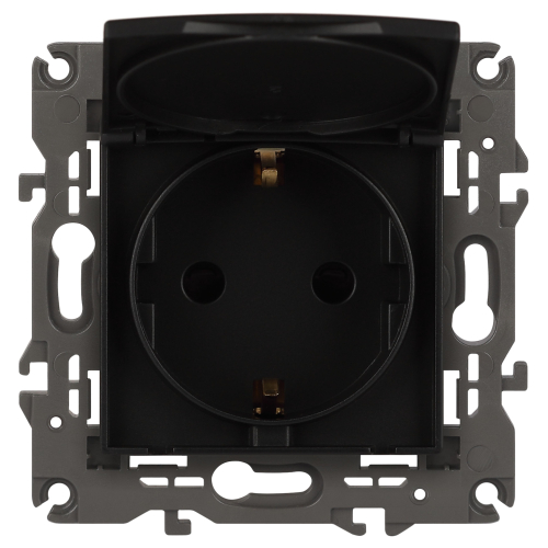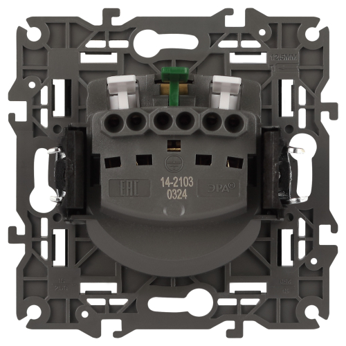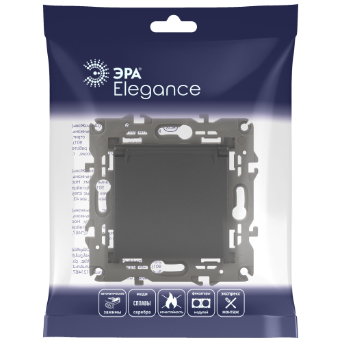 Розетка с заземлением шторки крышка Эра Elegance антрацит 14-2103-05. Оснащёна автоматическими клеммами для надёжной фиксации жил кабеля в механизме. Рамки приобретаются отдельно. Рамки Эра Elegance ПЛАСТИК: 1 пост 14-5001-хх, 2 поста 14-5002-хх, 3 поста 14-5003-хх, 4 поста 14-5004-хх, 5 постов 14-5005-хх; СТЕКЛО: 1 пост 14-5101-хх, 2 поста 14-5102-хх, 3 поста 14-5103-хх, 4 поста 14-5104-хх; МЕТАЛЛ: 1 пост 14-5201-хх, 2 поста 14-5202-хх, 3 поста 14-5203-хх, 4 поста 14-5204-хх; ДЕРЕВО: 1 пост 14-5301-хх, 2 поста 14-5302-хх, 3 поста 14-5303-хх, 4 поста 14-5304-хх (хх - код цвета: 00-прозрачный, 01-белый, белёный дуб, 02-слоновая кость, 03-алюминий, 04-шампань, 05-чёрный, чёрное дерево, 07-ясень, 09-дуб, 10-венге, 11-клён, 14-медь, 21-жёлтый, 22-оранжевый, 23-красный, 25-бордо, 26-лайм, 27-зелёный, 28-голубой, 29-синий, 30-розовый, 31-мокко, 32-серый, 41-сталь, 42-титан).