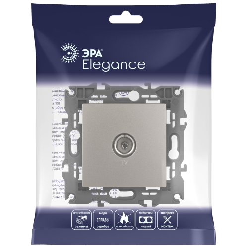 Розетка телевизионная одиночная серии Эра Elegance цвет титан 14-3101-16. Рамки приобретаются отдельно.