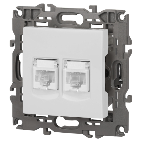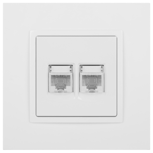 Розетка информационная двойная 2XRJ45 серии Эра Elegance скрытой установки цвет белый 14-3108-01. Выполенена из поликарбоната.