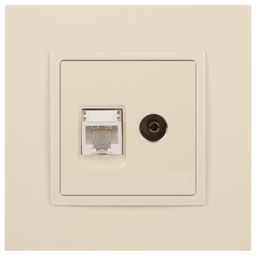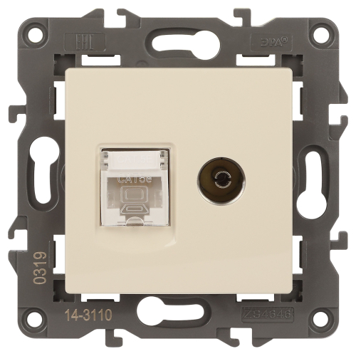 Розетка телевизионная + интернет серии Эра Elegance цвет слоновая кость 14-3110-02. Рамки приобретаются отдельно.
