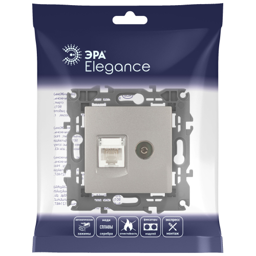 Розетка телевизионная + информационная RJ45+TV серии Эра Elegance цвет титан 14-3110-16. Рамки приобретаются отдельно.