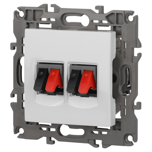 Розетка двойная аудио стерео серии Эра Elegance цвет белый 14-3112-01. Рамки приобретаются отдельно. Рамки Эра Elegance ПЛАСТИК: 1 пост 14-5001-хх, 2 поста 14-5002-хх, 3 поста 14-5003-хх, 4 поста 14-5004-хх, 5 постов 14-5005-хх; СТЕКЛО: 1 пост 14-5101-хх, 2 поста 14-5102-хх, 3 поста 14-5103-хх, 4 поста 14-5104-хх; МЕТАЛЛ: 1 пост 14-5201-хх, 2 поста 14-5202-хх, 3 поста 14-5203-хх, 4 поста 14-5204-хх; ДЕРЕВО: 1 пост 14-5301-хх, 2 поста 14-5302-хх, 3 поста 14-5303-хх, 4 поста 14-5304-хх (хх - код цвета: 00-прозрачный, 01-белый, белёный дуб, 02-слоновая кость, 03-алюминий, 04-шампань, 05-чёрный, чёрное дерево, 07-ясень, 09-дуб, 10-венге, 11-клён, 14-медь, 21-жёлтый, 22-оранжевый, 23-красный, 25-бордо, 26-лайм, 27-зелёный, 28-голубой, 29-синий, 30-розовый, 31-мокко, 32-серый, 41-сталь, 42-титан).