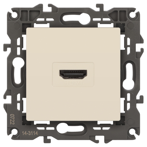 Розетка HDMI серии Эра Elegance цвет слоновая кость 14-3114-02. Рамки приобретаются отдельно. Рамки Эра Elegance ПЛАСТИК: 1 пост 14-5001-хх, 2 поста 14-5002-хх, 3 поста 14-5003-хх, 4 поста 14-5004-хх, 5 постов 14-5005-хх; СТЕКЛО: 1 пост 14-5101-хх, 2 поста 14-5102-хх, 3 поста 14-5103-хх, 4 поста 14-5104-хх; МЕТАЛЛ: 1 пост 14-5201-хх, 2 поста 14-5202-хх, 3 поста 14-5203-хх, 4 поста 14-5204-хх; ДЕРЕВО: 1 пост 14-5301-хх, 2 поста 14-5302-хх, 3 поста 14-5303-хх, 4 поста 14-5304-хх (хх - код цвета: 00-прозрачный, 01-белый, белёный дуб, 02-слоновая кость, 03-алюминий, 04-шампань, 05-чёрный, чёрное дерево, 07-ясень, 09-дуб, 10-венге, 11-клён, 14-медь, 21-жёлтый, 22-оранжевый, 23-красный, 25-бордо, 26-лайм, 27-зелёный, 28-голубой, 29-синий, 30-розовый, 31-мокко, 32-серый, 41-сталь, 42-титан).