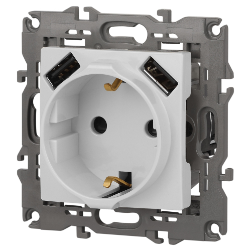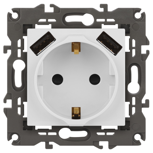 Розетка с USB серии Эра Elegance цвет белый 14-4109-01. Номинальные характеристики . Оснащёна автоматическими клеммами для надёжной фиксации жил кабеля в механизме. Рамки приобретаются отдельно. Рамки Эра Elegance ПЛАСТИК: 1 пост 14-5001-хх, 2 поста 14-5002-хх, 3 поста 14-5003-хх, 4 поста 14-5004-хх, 5 постов 14-5005-хх; СТЕКЛО: 1 пост 14-5101-хх, 2 поста 14-5102-хх, 3 поста 14-5103-хх, 4 поста 14-5104-хх; МЕТАЛЛ: 1 пост 14-5201-хх, 2 поста 14-5202-хх, 3 поста 14-5203-хх, 4 поста 14-5204-хх; ДЕРЕВО: 1 пост 14-5301-хх, 2 поста 14-5302-хх, 3 поста 14-5303-хх, 4 поста 14-5304-хх (хх - код цвета: 00-прозрачный, 01-белый, белёный дуб, 02-слоновая кость, 03-алюминий, 04-шампань, 05-чёрный, чёрное дерево, 07-ясень, 09-дуб, 10-венге, 11-клён, 14-медь, 21-жёлтый, 22-оранжевый, 23-красный, 25-бордо, 26-лайм, 27-зелёный, 28-голубой, 29-синий, 30-розовый, 31-мокко, 32-серый, 41-сталь, 42-титан).