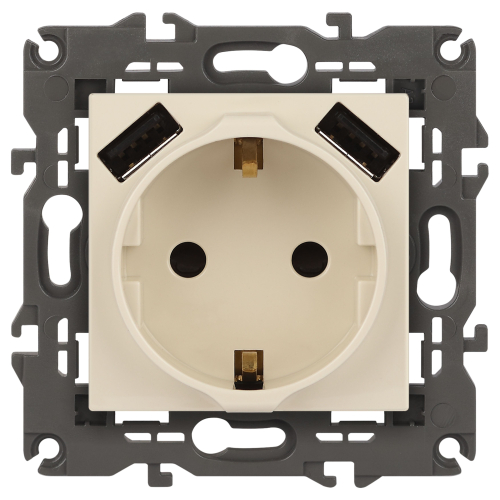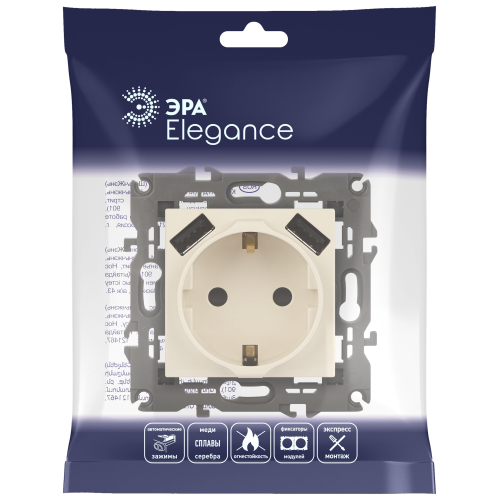 Розетка с USB серии Эра Elegance цвет слоновая кость 14-4109-02. Номинальные характеристики . Оснащёна автоматическими клеммами для надёжной фиксации жил кабеля в механизме. Рамки приобретаются отдельно. Рамки Эра Elegance ПЛАСТИК: 1 пост 14-5001-хх, 2 поста 14-5002-хх, 3 поста 14-5003-хх, 4 поста 14-5004-хх, 5 постов 14-5005-хх; СТЕКЛО: 1 пост 14-5101-хх, 2 поста 14-5102-хх, 3 поста 14-5103-хх, 4 поста 14-5104-хх; МЕТАЛЛ: 1 пост 14-5201-хх, 2 поста 14-5202-хх, 3 поста 14-5203-хх, 4 поста 14-5204-хх; ДЕРЕВО: 1 пост 14-5301-хх, 2 поста 14-5302-хх, 3 поста 14-5303-хх, 4 поста 14-5304-хх (хх - код цвета: 00-прозрачный, 01-белый, белёный дуб, 02-слоновая кость, 03-алюминий, 04-шампань, 05-чёрный, чёрное дерево, 07-ясень, 09-дуб, 10-венге, 11-клён, 14-медь, 21-жёлтый, 22-оранжевый, 23-красный, 25-бордо, 26-лайм, 27-зелёный, 28-голубой, 29-синий, 30-розовый, 31-мокко, 32-серый, 41-сталь, 42-титан).