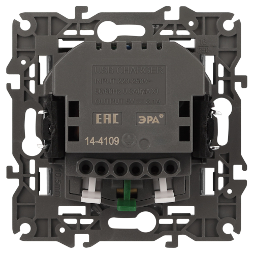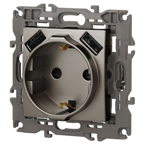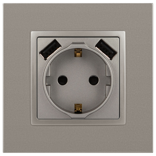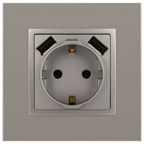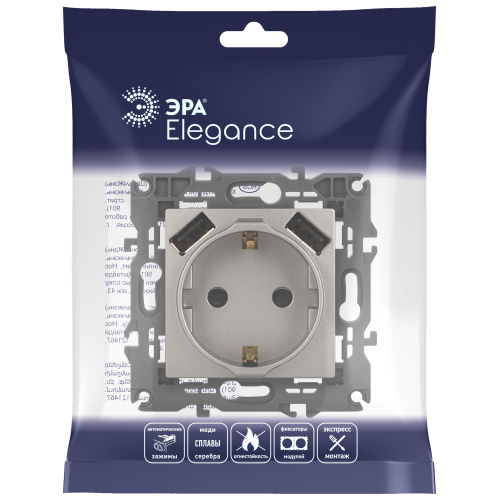 Розетка с USB серии Эра Elegance цвет титан 14-4109-16. Номинальные характеристики силовой розетки 16А 250В, разъемов USB 3А 5В. Оснащена автоматическими клеммами для надёжной фиксации жил кабеля в механизме.