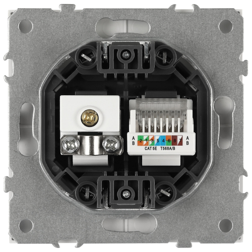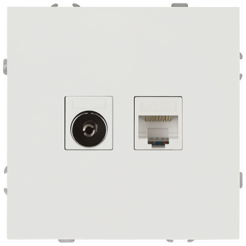 Розетка телевизионная + интернет серии ЭРА Galaxy скрытой установки механизм цвет белый 15-3110-01. Сделана из поликарбоната, оснащёна винтовыми клеммами. Парные клеммы обеспечивают соединение шлейфом. Монтаж в подрозетник производится и на лапки, и на винты. Рамки приобретаются отдельно.