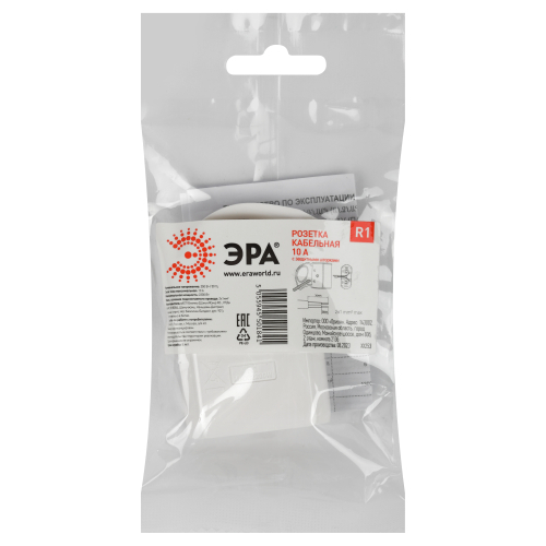 Розетка штепсельная ЭРА, максимальная мощность - 10A / 2200В (кабель до 2x1мм2), поликарбонат