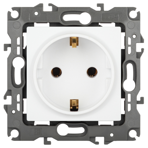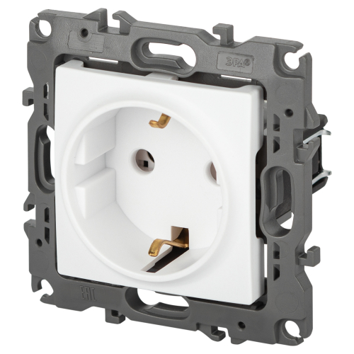 Розетка с заземлением серии Эра 12 скрытой установки механизм цвет белый матовый 12-2101-01М. Номинальные характеристики 16А 250В . Сделана из поликарбоната, оснащена автоматическими клеммами для быстрой и надёжной фиксации жил кабеля в механизме. Парные клеммы обеспечивают соединение шлейфом. Монтаж в подрозетник производится и на лапки, и на винты. Рамки приобретаются отдельно.