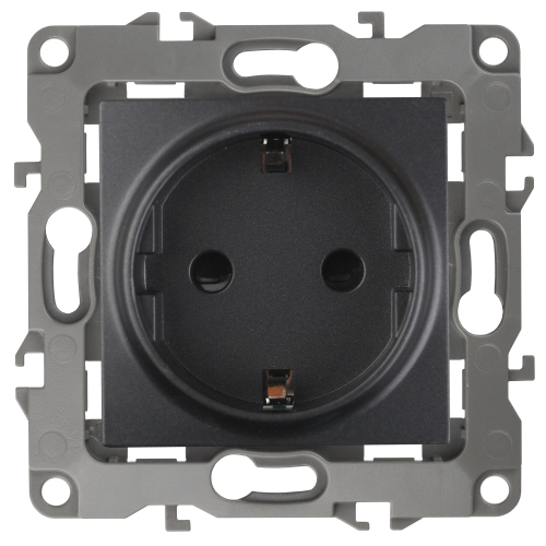 Розетка с заземлением серии Эра 12 скрытой установки механизм цвет антрацит 12-2101-05. Номинальные хар-ки 16А 250В . Сделана из поликарбоната, оснащёна автоматическими клеммами для быстрой и надёжной фиксации жил кабеля в мех аниме. Парные клеммы обеспечивают соединение шлейфом. Монтаж в подрозетник производится и на лапки, и на винты. Рамки приобретаются отдельно. Рамки Эра 12: 1 пост 12-5001-хх, 2 поста 12-5002-хх, 3 поста 12-5003-хх, 4 поста 12-5004-хх, 5 постов 12-5005-хх. Рамки Эра 12 Сатин: 1 пост 12-5101-хх, 2 поста 12-5102-хх, 3 поста 12-5103-хх, 4 поста 12-5104-хх, 5 постов - 12-5105-хх (хх - код цвета: 01-белый, 02-слоновая кость, 03-алюминий, 04-шампань, 05-антрацит, 06-чёрный, 07-ольха(белёный дуб-сатин), 08-вишня, 09-дуб, 10-венге, 11-сосна, 21-жёлтый, 22-оранжевый, 23-красный, 24-охра, 25-бордо, 26-лайм, 27-зелёный, 28-голубой, 29-синий).