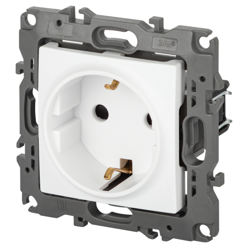 Розетка с заземлением со шторками серии Эра 12 скрытой установки механизм цвет белый матовый 12-2102-01М. Номинальные хар-ки 16А 250В . Сделана из поликарбоната, оснащена автоматическими клеммами для быстрой и надёжной фиксации жил кабеля в механизме. Парные клеммы обеспечивают соединение шлейфом. Монтаж в подрозетник производится и на лапки, и на винты. Рамки приобретаются отдельно.