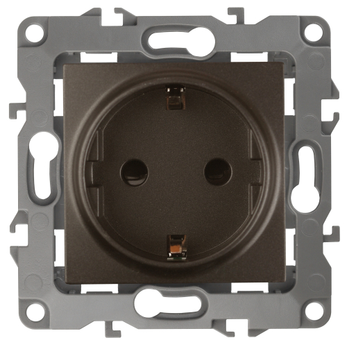 Розетка с заземлением со шторками серии Эра 12 скрытой установки механизм цвет бронза 12-2102-13. Номинальные хар-ки 16А 250В . Сделана из поликарбоната, оснащёна автоматическими клеммами для быстрой и надёжной фиксации жил кабеля в мех аниме. Парные клеммы обеспечивают соединение шлейфом. Монтаж в подрозетник производится и на лапки, и на винты. Рамки приобретаются отдельно. Рамки Эра 12: 1 пост 12-5001-хх, 2 поста 12-5002-хх, 3 поста 12-5003-хх, 4 поста 12-5004-хх, 5 постов 12-5005-хх. Рамки Эра 12 Сатин: 1 пост 12-5101-хх, 2 поста 12-5102-хх, 3 поста 12-5103-хх, 4 поста 12-5104-хх, 5 постов - 12-5105-хх (хх - код цвета: 01-белый, 02-слоновая кость, 03-алюминий, 04-шампань, 05-антрацит, 06-чёрный, 07-ольха(белёный дуб-сатин), 08-вишня, 09-дуб, 10-венге, 11-сосна, 21-жёлтый, 22-оранжевый, 23-красный, 24-охра, 25-бордо, 26-лайм, 27-зелёный, 28-голубой, 29-синий).