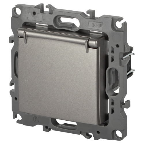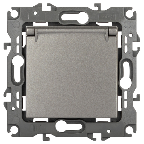 Розетка с заземлением со шторками с крышкой серии Эра 12 скрытой установки механизм цвет титан 12-2103-16. Номинальные хар-ки 16А 250В. Сделана из поликарбоната, оснащена автоматическими клеммами для быстрой и надёжной фиксации жил кабеля в механизме. Парные клеммы обеспечивают соединение шлейфом. Монтаж в подрозетник производится и на лапки, и на винты.