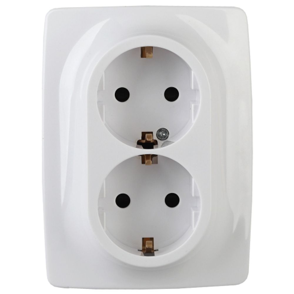 Розетка 2X2P+E Schuko, 16АХ-250В, винт, Эра12, белый