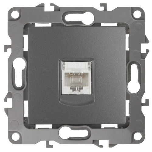 Розетка интернет RJ45 серии Эра 12 скрытой установки механизм цвет графит 12-3107-12. Сделана из поликарбоната. Монтаж в подрозетник производится и на лапки, и на винты. Рамки приобретаются отдельно. Рамки Эра 12: 1 пост 12-5001-хх, 2 поста 12-5002-хх, 3 поста 12-5003-хх, 4 поста 12-5004-хх, 5 постов 12-5005-хх. Рамки Эра 12 Сатин: 1 пост 12-5101-хх, 2 поста 12-5102-хх, 3 поста 12-5103-хх, 4 поста 12-5104-хх, 5 постов - 12-5105-хх (хх - код цвета: 01-белый, 02-слоновая кость, 03-алюминий, 04-шампань, 05-антрацит, 06-чёрный, 07-ольха(белёный дуб-сатин), 08-вишня, 09-дуб, 10-венге, 11-сосна, 21-жёлтый, 22-оранжевый, 23-красный, 24-охра, 25-бордо, 26-лайм, 27-зелёный, 28-голубой, 29-синий).