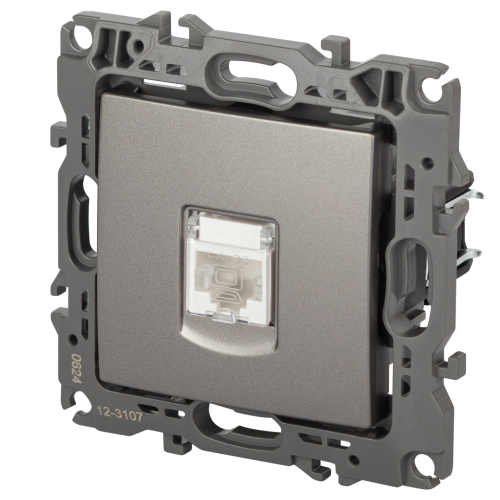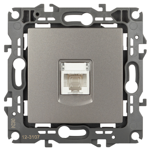 Розетка информационная RJ45 серии Эра 12 скрытой установки механизм цвет титан 12-3107-16. Сделана из поликарбоната. Монтаж в подрозетник производится и на лапки, и на винты. Рамки приобретаются отдельно.