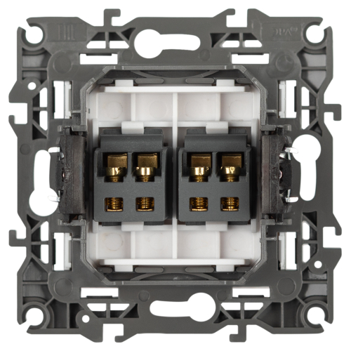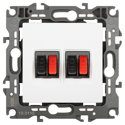 Розетка двойная аудио стерео серии Эра 12 скрытой установки механизм цвет белый матовый 12-3112-01М. Сделана из поликарбоната. Монтаж в подрозетник производится и на лапки, и на винты. Рамки приобретаются отдельно.