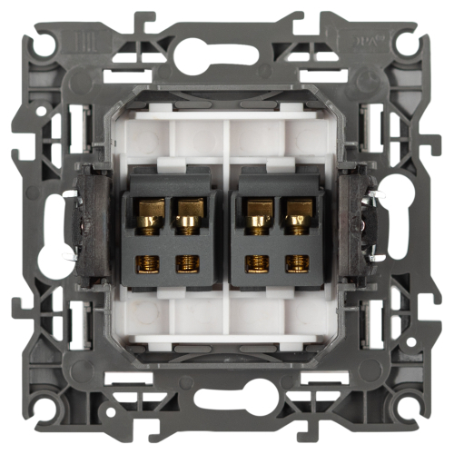 Розетка двойная аудио стерео серии Эра 12 скрытой установки механизм цвет титан 12-3112-16. Сделана из поликарбоната. Монтаж в подрозетник производится и на лапки, и на винты. Рамки приобретаются отдельно.